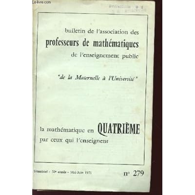 Enjoy you are read it. Bulletin De L Association Des Professeurs De Mathematiques De L Enseignement Public, 50e Annee, N 279, Mai-juin 1971, La Mathematique En 4e Par Ceux Qui L Enseignent PDF ePub book, let's get read or download it because available in formats PDF, Kindle, ePub, iPhone and Mobi also.